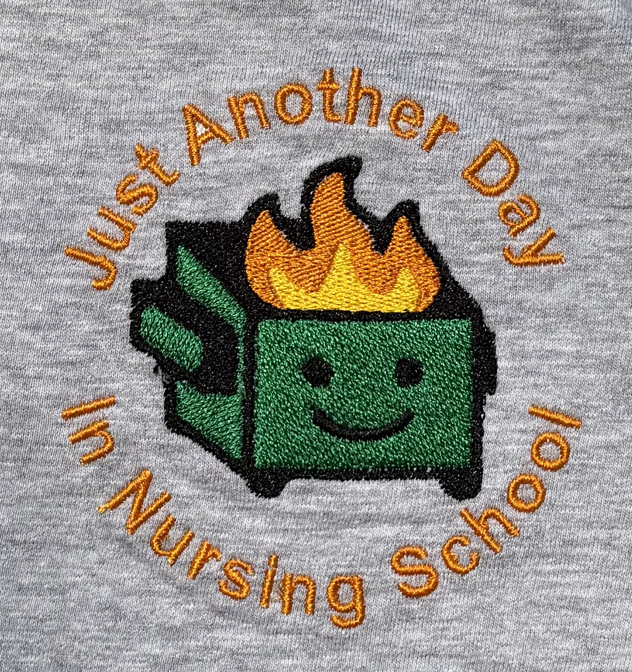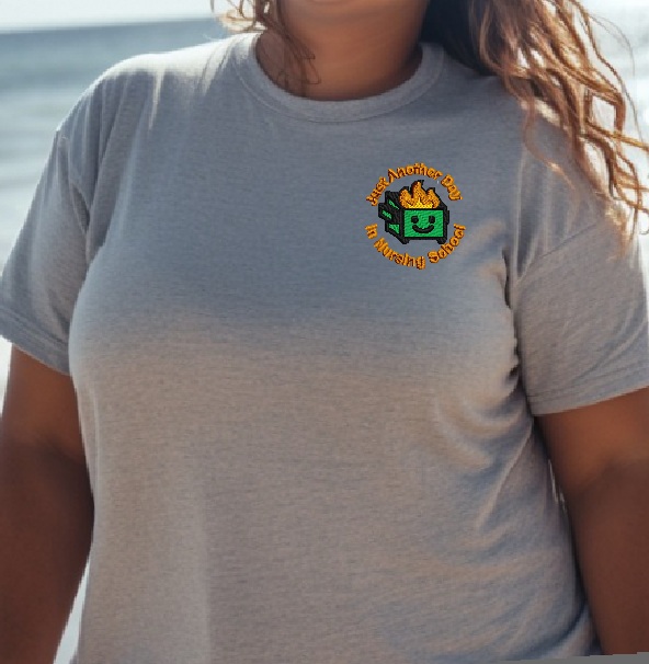 For those nursing students who perceive the reality of nursing school as a total dumpster fire, this hoodie is for you! The logo is machine embroidered to the left front of the shirt.