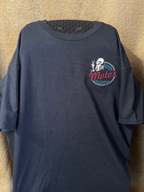 - Machine embroidered design on left front of shirt